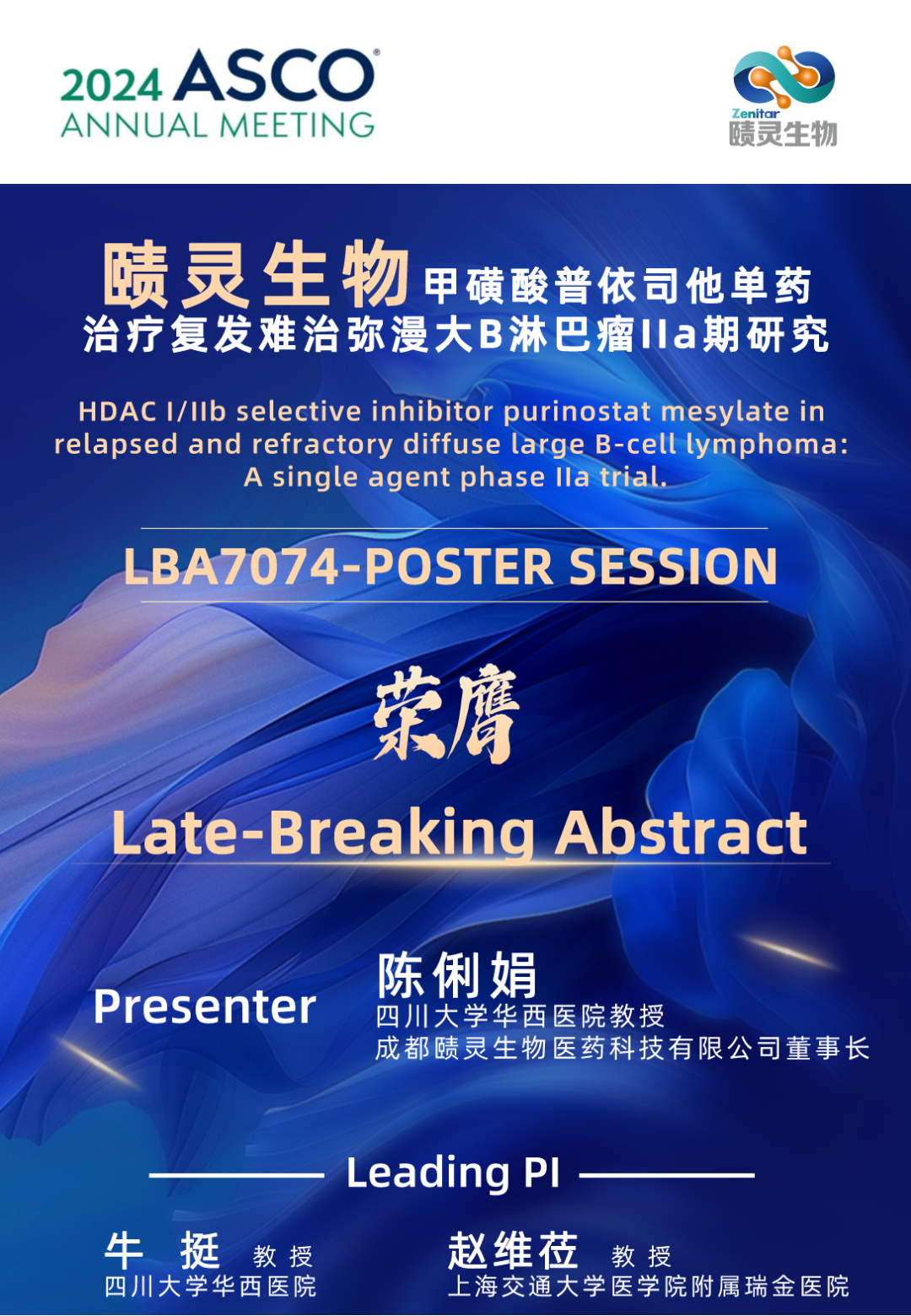 已投企業動態 | 賾靈生物首登國際大會舞臺,原研新藥入選2024年ASCO LBA