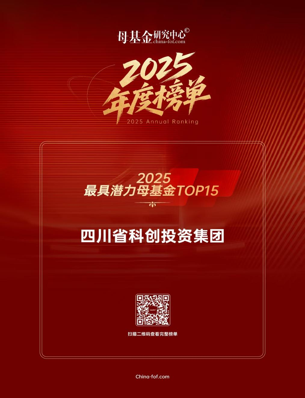 近日,母基金研究中心正式發(fā)布“2025年度榜單”,四川省科技創(chuàng)新投資集團(tuán)有限責(zé)任公司(以下簡(jiǎn)稱“四川省科創(chuàng)投資集團(tuán)”)憑借在母基金領(lǐng)域的專業(yè)運(yùn)作、穩(wěn)健布局與持續(xù)成長(zhǎng)潛力,成功入選“2025最具潛力母基金TOP15”。